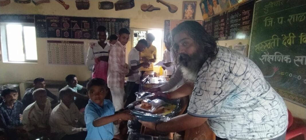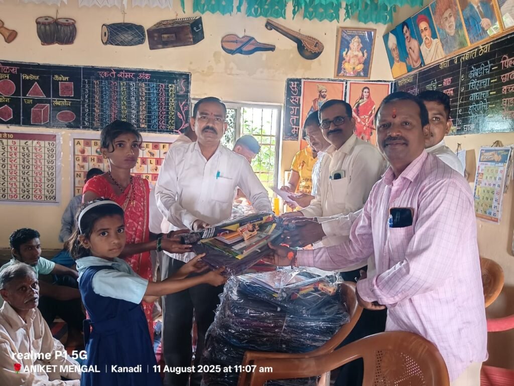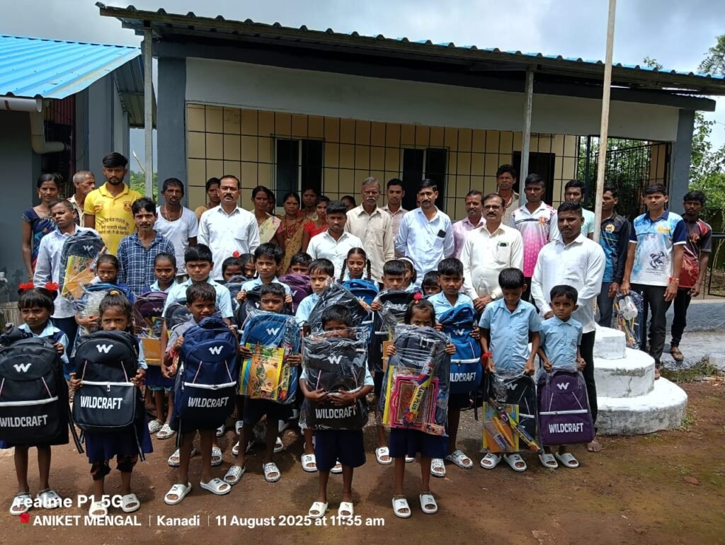 शैक्षणिक साहित्याचे वाटप ग्रुप ग्रामपंचायतीचे उपसरपंच श्री.किरण निमसे ,आदिवासी आघाडीचे प्रमुख श्री.नरसु गावंडा , ग्रुप ग्रामपंचायतीचे सद्स्य श्री.रविंद्र मेंगाळ , केंद्रप्रमुख श्री.पवार सर व प्रतिष्ठित ग्रामस्थ यांच्या हस्ते साहित्य वाटप करण्यात आले.तसेच स्वयंपाकी ताई सौ.लिलाताई मेंगाळ यांना साडीचोळी देउन त्यांचा सत्कार करण्यात आला.